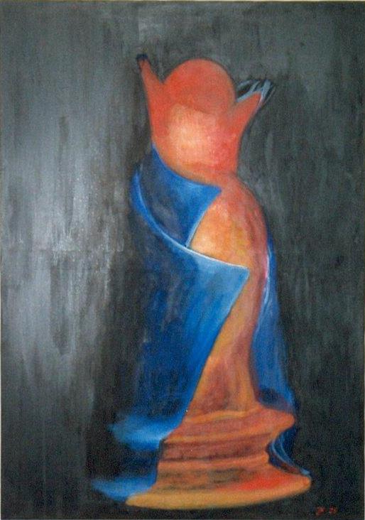 Figur mit blauem Umhang öl auf Leinwand; Privatbesitz
